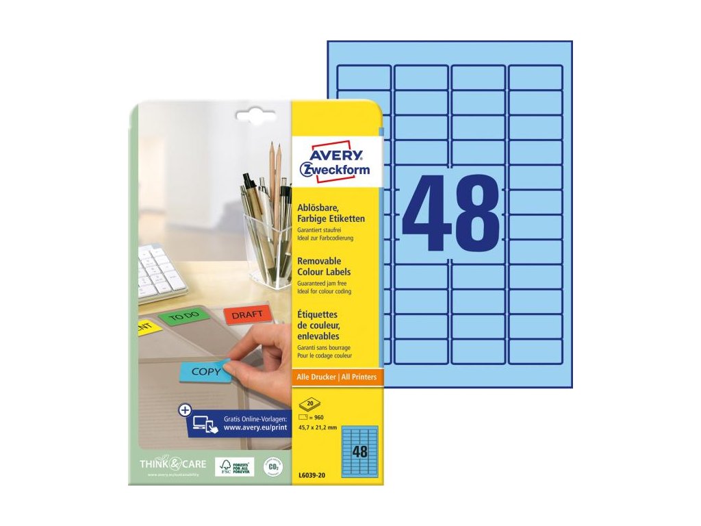 Etikety Avery odnímateľné 45,7x21,2 mm, modré