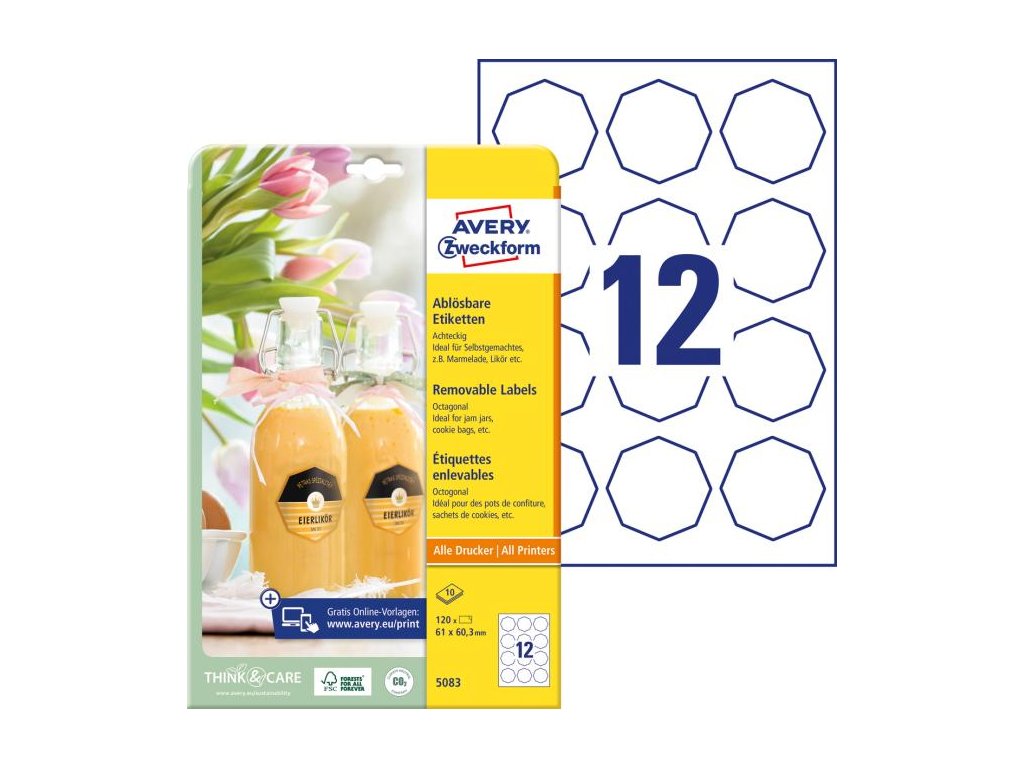 Etikety osemhranné 61x60,3mm Avery 10 hárkov biele