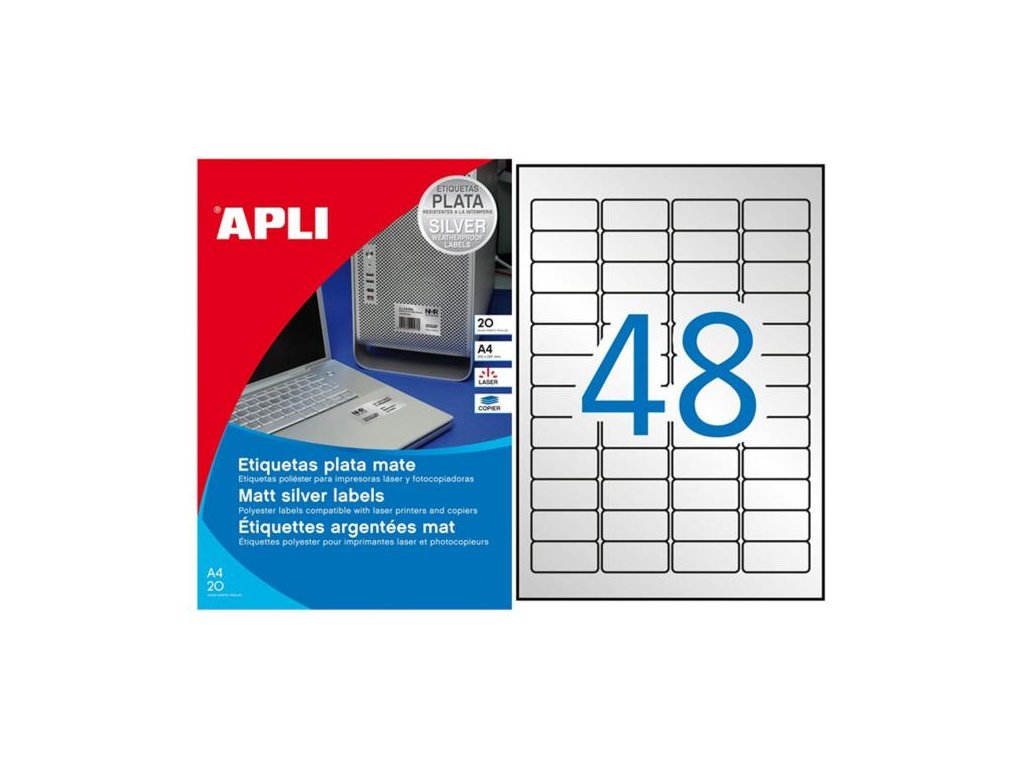 Etikety polyesterové 45,7x21,2mm APLI A4 20 hárkov strieborné