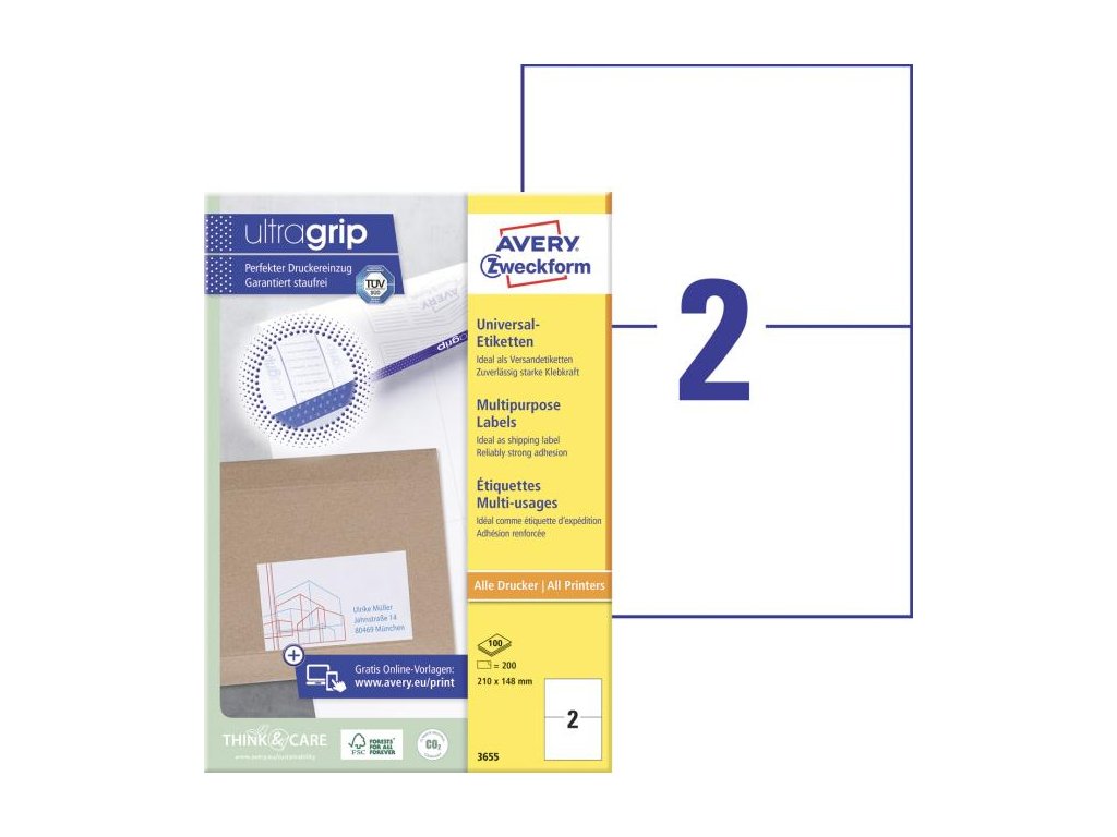 Biele univerzálne etikety vhodné na každodenné použitie v atramentových a laserových tlačiarňach a kopírovacích strojoch. Vďaka inovatívnej technológie ultragrip sa môžete spoľahnúť na bezchybné natiahnutie archu a tlač bez zasekávania. Bezpečnostný okraj QCT zabraňuje zanášaniu tlačiarne lepidlom. Pre laserové tlačiarne testované a certifi kované TÜV SÜD. Vysoká lepivosť na rôznych povrchoch. Ostrá tlač bez bez rozmazávania. Etikety sú vyrobené spôsobom šetrným k životnému prostrediu, majú certifi káciu FSC®, sú bielené bez použitia chlóru. Šablóny a softvér pre jednoduchú a rýchlu tlač etikiet k dispozícii zdarma. U niektorých rozmerov systém QuickPEEL™ na rýchlejšie odlepenie etikiet. Formát A4. Balenie 100 hárkov. Farba biela.Etikiet na hárku: 2