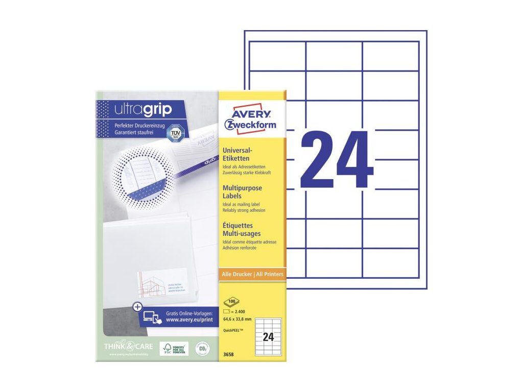 Etikety univerzálne 64,6x33,8mm Avery A4 100 hárkov