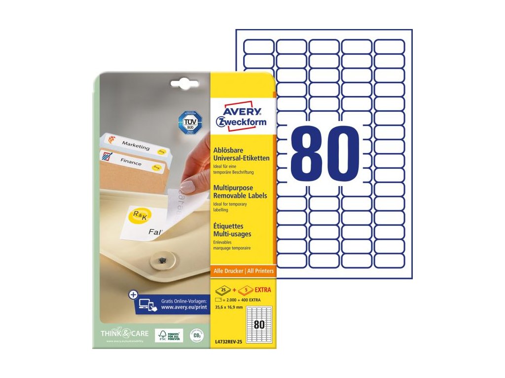 Etikety univerzálne odnímateľné 35,6x16,9mm Avery A4 25+5 hárkov