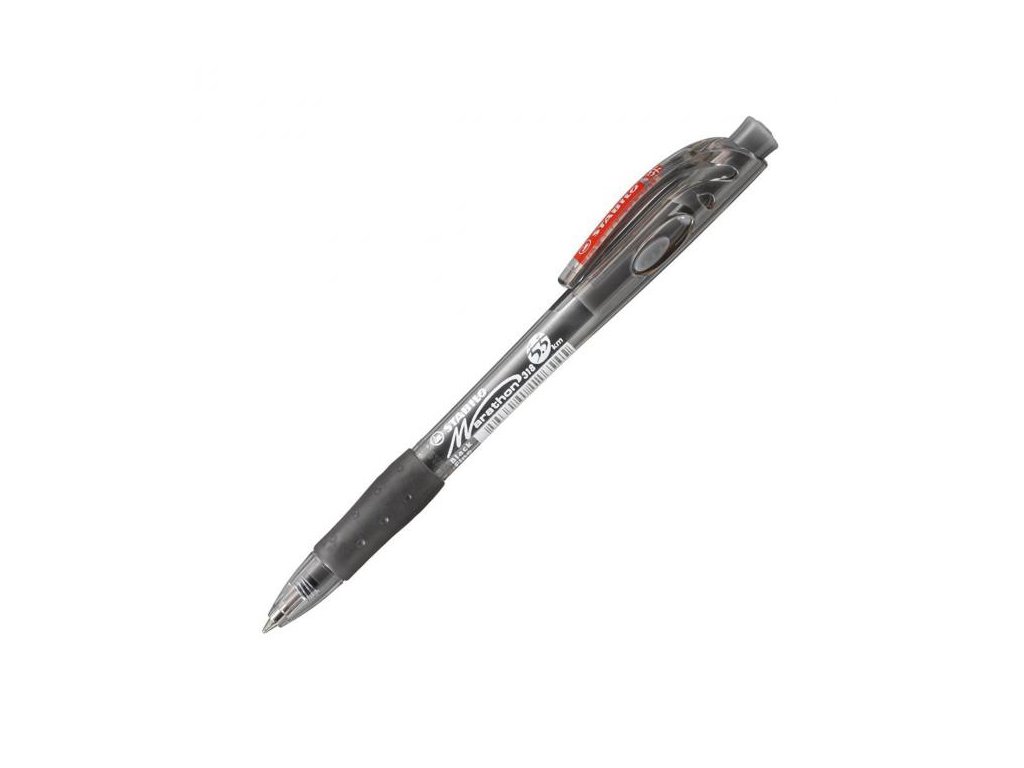 Plastové guľôčkové pero s klikacím mechanizmom a gumovým úchytom na pohodlné písanie. Veľkoobjemová vymeniteľná náplň XXL vydrží písať 5500 m, čo je 2× viac ako u štandardných guličkových pier. Šírka stopy 0,3 mm. Väčšie balenie 10 ks.Farba tela: čierna. Telo vo farbe náplne.