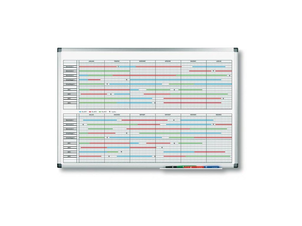 Tabuľa s popisovateľným magnetickým a špeciálne lakovaným a UV tvrdeným povrchom vo verzii ročného plánovača Premium v dvoch polovinách, vhodného pre dlhodobé projekty. Pre prehľadné plánovanie do 20 ľudí/ objektov. Magnetický povrch. Sada príslušenstva zahrňuje 4 stierateľné popisovače TZ 111 a 40 magnetických menoviek veľkosti 10 × 60 mm s bielymi štítkami.Rozmery: 60x90 cm