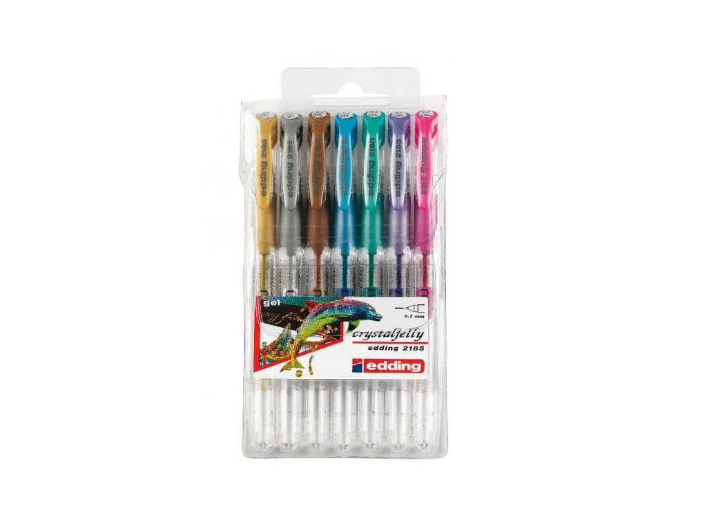 Jednorazový roller edding 2185 crystaljelly v metalických farbách gélu, ktoré vyniknú najmä na tmavom papieri vďaka vynikajúcej krycej schopnosti. Šírka stopy 0,7 mm. Sada 7 metalických farieb.Dodatočné parametre