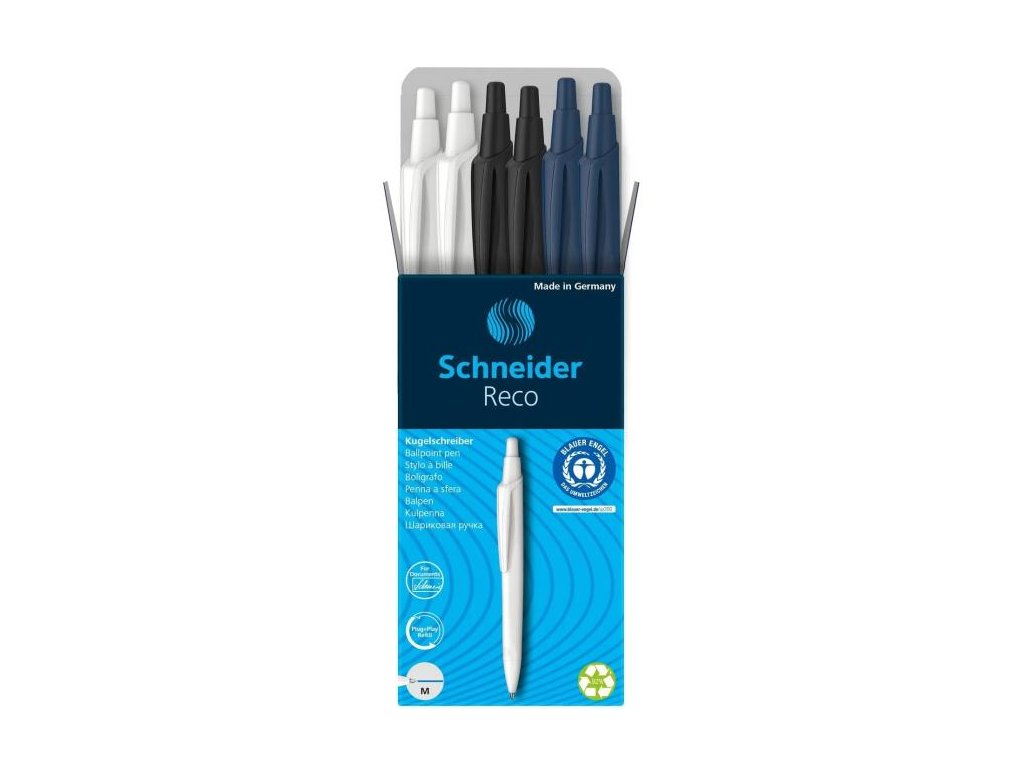 Guľôčkové pero Schneider Reco M s modrou náplňouprvé guľočkové pero na svete ocenené prestížnou ekologickou značkou Blue Angel