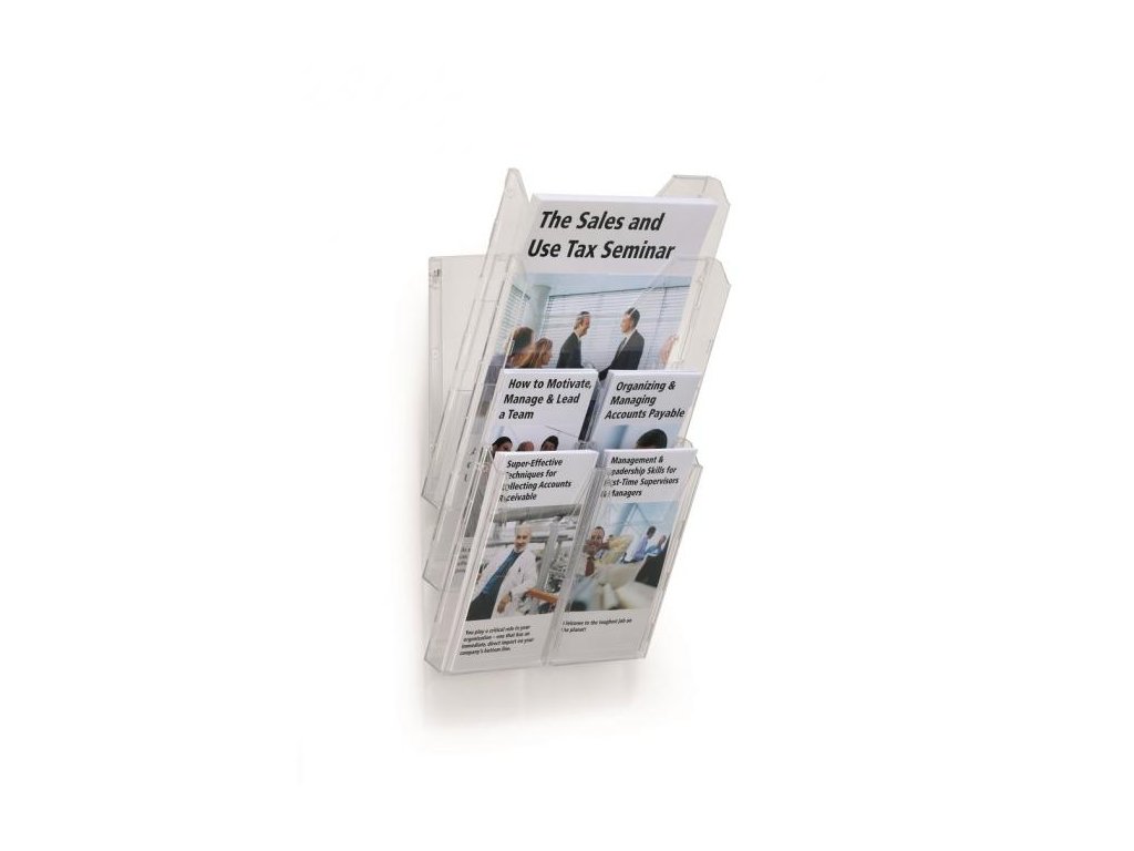 Kombinovaný stojan COMBIBOXX A4 s odkladačom A4 vnútorných rozmerov 240 × 311 mm a štyroch odkladačov 1/ 3 A4 (DL alebo A6) s hĺbkou 24 mm. Možnosť aplikácie na stenu alebo stôl. Materiál priehľadný plast.Dodatočné parametre