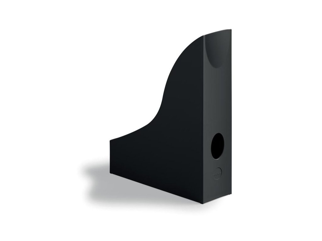 Praktický stojan na časopisy a katalógy z recyklovaného plastu v kvalite Blue Angel, pre formáty A4. S otvorom na prst pre ľahké vyberanie z police. Rozmery: 73 x 306 x 241 mm (Š x V x H). Farba čierna.Dodatočné parametre