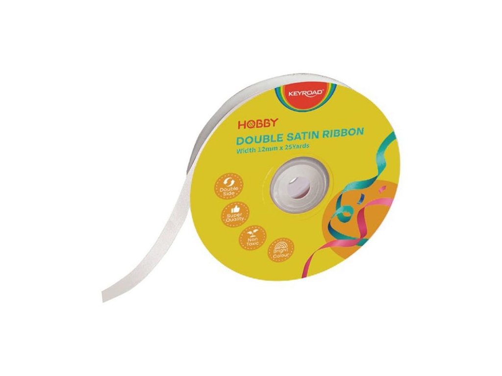 Stuha KEYROAD dvojitá saténová, 12 mm x 22,86 m, na cievke, biela