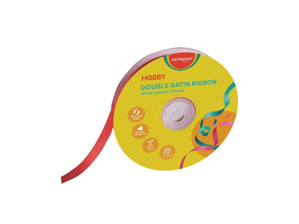 Stuha KEYROAD dvojitá saténová, 12 mm x 22,86 m, na cievke, červená
