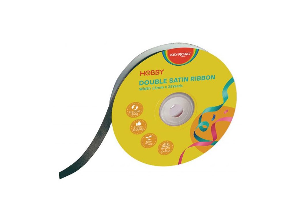 Stuha KEYROAD dvojitá saténová 12 mm x 22,86 m, na cievke, čierna